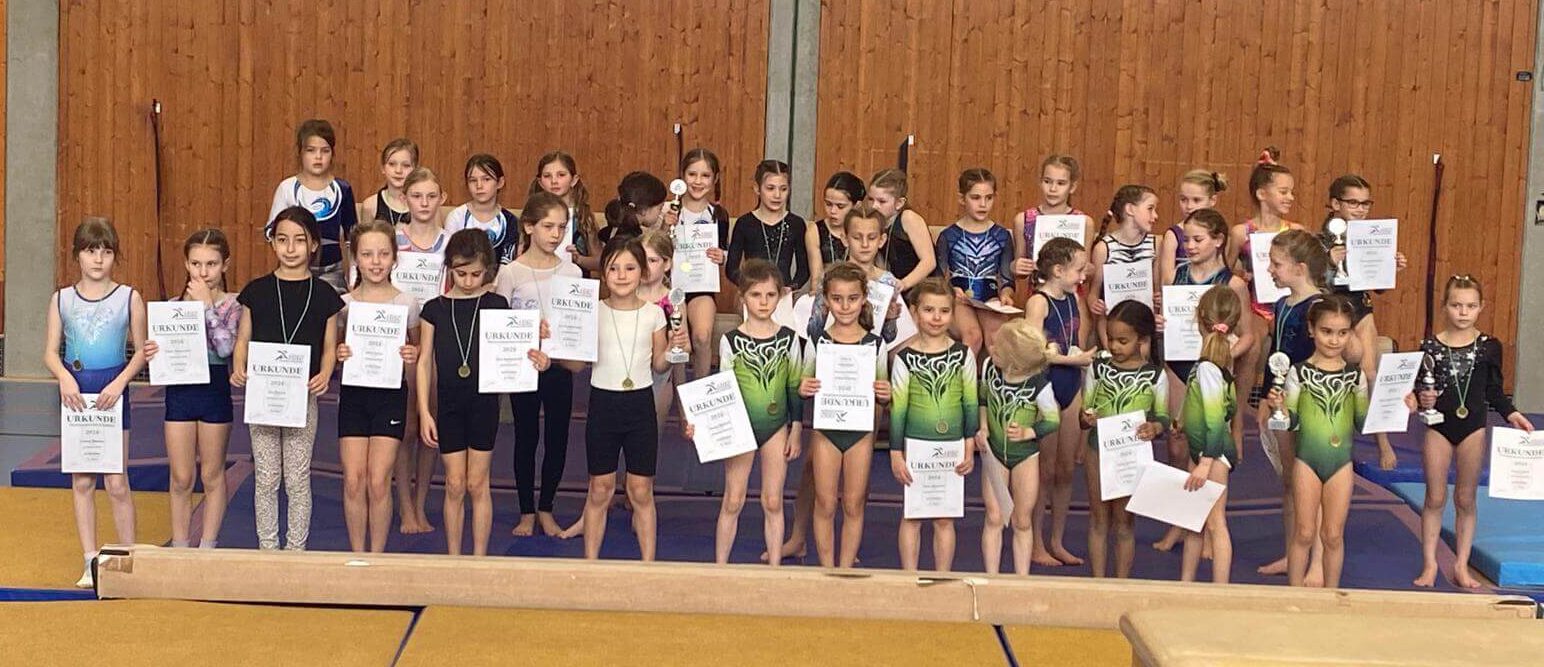 Am zweiten Tag des großen Wettkampfwochenendes fanden die Vereinsmeisterschaften der P-Stufen und AK-Übungen statt. Diese wurden aufgrund der hohen Teilnehmerzahl wie im Vorjahr in zwei Durchgängen ausgetragen. Vormittags turnten die Mädchen der Jahrgänge 2016 bis 2019. Es nahmen Kinder aus den Abteilungen Turnen Breitensport und Turnen Wettkampfsport teil. Diese wurden getrennt gewertet. In insgesamt neun verschiedenen Wertungsgruppen wurden die Siegerinnen ermittelt.